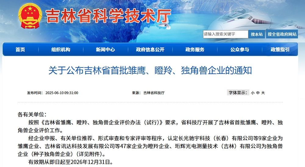 2025q??0日,吉林省科学技术厅公布了吉林省首批雏鹰、瞪、独角兽企业名单。吉林中U研伸科技有限公司凭借卓的创新实力与爆发式的成镉K度Q成功跻w吉林省首批“瞪企业”行列!